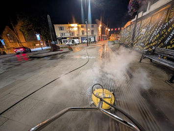 Newcastle-Under-Lyme Borough Council: 16000 sq mtrs street cleaning the town centre with focus on chewing gum removal.