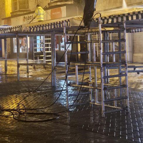 An overnight clean by our team to keep out of the way of pedestrians and the canopies look like new. Photos below before, after and during.