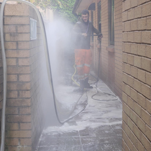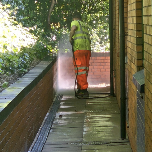 Thorough cleaning and sanitising of pathways to remove dirt, moss, and potential slip hazards